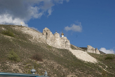 В населенном пункте Селявное-1 по указателю "монастырь", едем до стоянки монастыря. Автостоянка удалена от обители на несколько сотен метров из-за крутого спуска по меловой горе. Спуск осуществляется самостоятельно.