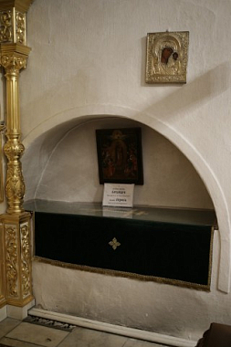 Расположена к западу от Успенского собора монастыря. Церковь сильно искажена многочисленными перестройками.