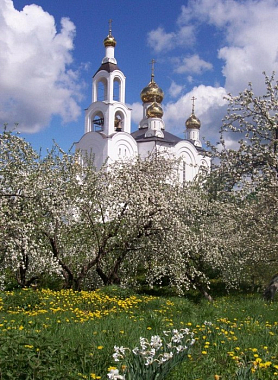«Жемчужиной обители» по праву называют собор Воскресения Христова – десятиглавый белоснежный крестово-купольный храм с колокольней. Храм по проекту доктора архитектуры, профессора Валентина Витальевича Курбатова был заложен в 2002 году.