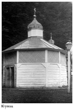 Строительство монастыря продолжалось. В 1891 г. над источником вместо первой деревянной часовни была построена каменная, красивая и удобная для богослужения. В центре часовни, возвышаясь над полом, располагался небольшой каменный резервуар, в который был заключен источник. Наполняя резервуар, вода с шумом стекала в большой деревянный бассейн, находившийся в закрытом помещении и служивший купальней для богомольцев. Купальня разделялась на две половины — мужскую и женскую. Несмотря на низкую температуру воды (+8° С), многие богомольцы купались в бассейне, прочие же ограничивались частичным омовением. Вода в бассейне не была стоячей, так как он был постоянно полон, и лишняя вода стекала. Имелось и специальное приспособление, при помощи которого можно было полностью менять всю воду в бассейне всего за 25 минут. В часовне, из самого источника, брали воду для питья.