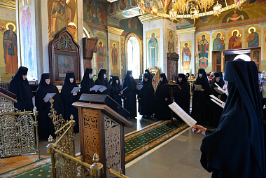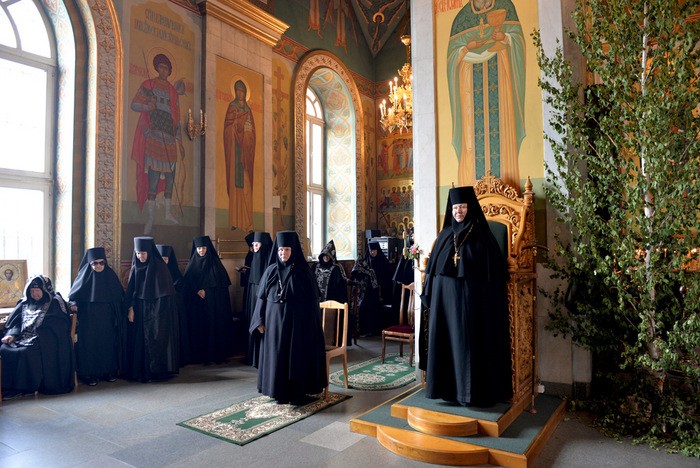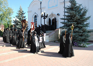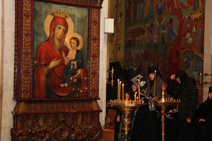 Особенно любима монашествующими Божия Матерь. Она – первая Монахиня и покровительница всех монашествующих, всех «девства желающих». Поэтому каждый вечер по будням у нас поется на распев акафист чтимым иконам Божией Матери – Казанской, по средам Ченстоховской, а по пятницам Иверской. На акафисте присутствуют все сестры. Ежедневно после акафиста совершается Крестный ход с Казанской иконой Божией Матери.