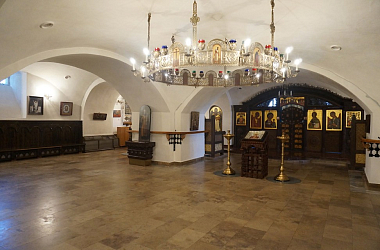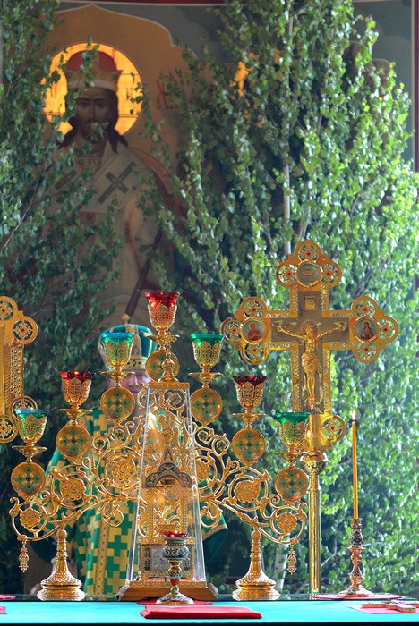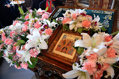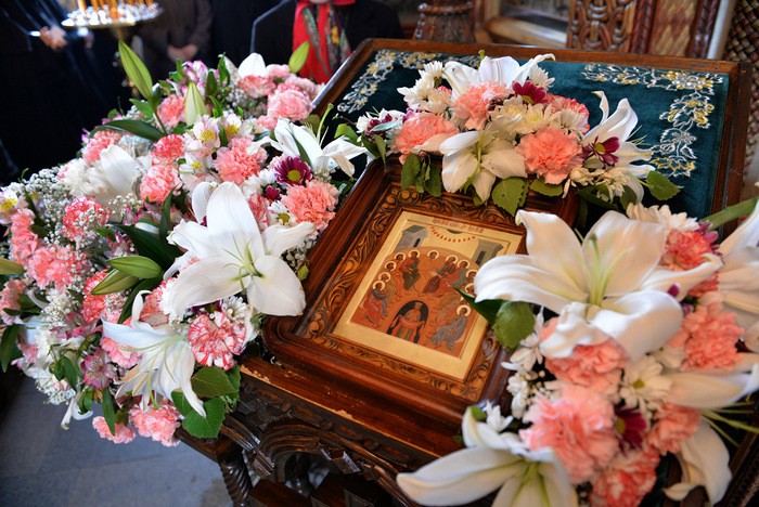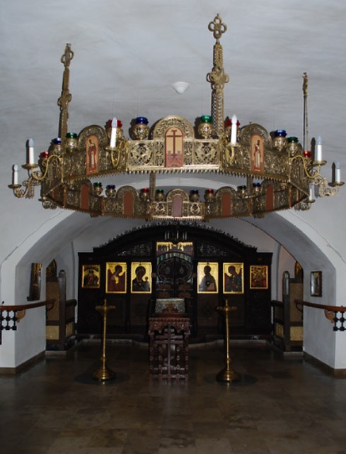 Верхний храм - трехпрестольный. Главный придел посвящен Пресвятой Троице, правый придел освящен в честь Всех святых, а левый – в честь преподобного Арсения Великого.