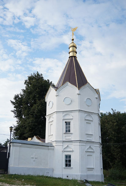 При восстановлении обители, желая как можно скорее начать Богослужение, был наспех отремонтирован именно этот небольшой храм на колокольне – фанерный иконостас, беленые стены, скромное облачение. За неимением стекла, оконные проемы были затянуты полиэтиленовой пленкой. Первое Богослужение состоялось 19 августа 1991 года на праздник Преображения Господня. Началась литургическая жизнь обители и в честь этого исторического для всей жизни монастыря события обитель получила официальное название - Свято-Тихоновский Преображенский женский монастырь.