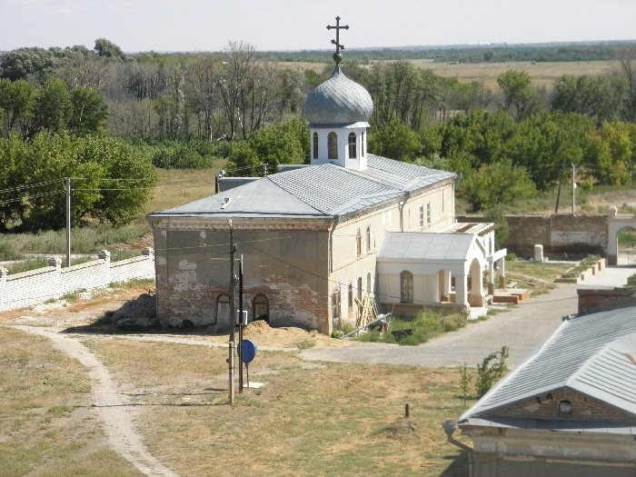 В 1991 году после ходатайства архиепископа Волгоградского и Камышинского Германа (Тимофеева) решением Волгоградского областного совета народных депутатов монастырь был возвращен Русской Православной Церкви. С этого момента монастырь зарегистрирован как мужской. Первым наместником возвращенной обители указом архиепископа Германа от 5 августа 1991 года назначается иеромонах Савва (Кудинов). Весь монастырь тогда представлял из себя несколько еле отапливаемых комнат в полуразрушенном здании и покосившийся деревянный коровник. В сохранившемся здании монастырской церкви «Всех Скорбящих Радости» до самой зимы 1991 года находились быки, поэтому домовой храм с простеньким иконостасом пришлось обустраивать в одну из комнат дальнего корпуса.