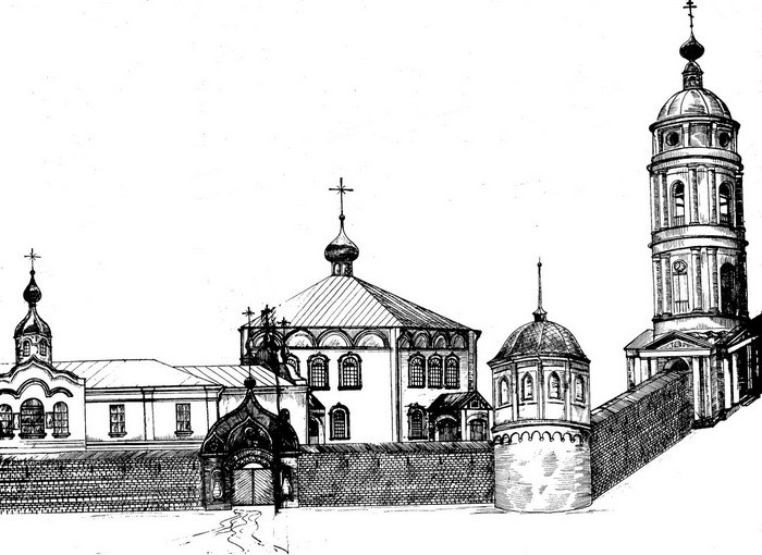 В первой половине XIX века в монастыре был воздвигнут ряд новых построек: в 1801 г. – каменный 2-этажный корпус, в 1816 г. – каменный 1-этажный дом (в нём братские келии, трапеза, кухня, кладовая), в 1818–1822 гг. – каменная колокольня. Таким образом, к началу 40-х годов XIX века монастырь приобрёл тот вид, который оставался практически неизменным вплоть до его разрушения в годы советской власти. Тихий, благообразный, загородный монастырь жил своей внутренней, спокойной и размеренной жизнью.