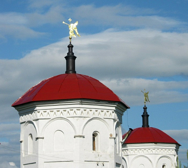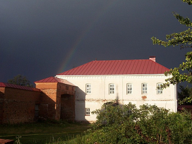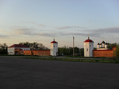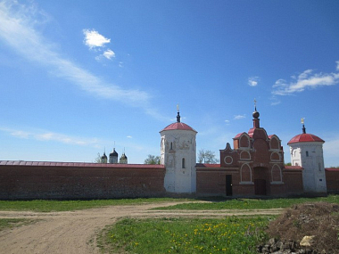 Окружала обитель крепостная каменная стена с четырьмя башнями - бойницами по углам, что указывает на приспособление к самозащите.
