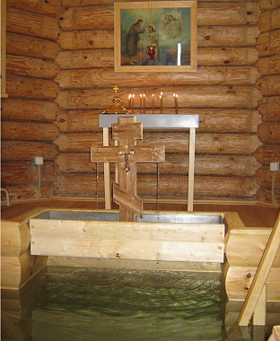 Деревянная часовня с двумя раздельными купальнями, мужской и женской, построена в 2008г. Освящена 11 января 2009г. в честь иконы Божией Матери «Живоносный Источник»