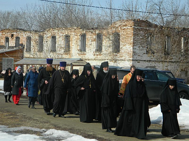 По случаю стихийного бедствия – разрушительного пожара 20 сентября 1742 г., истребившего деревянные постройки обоих монастырей, – настоятельница монахиня Тарсилла с сестрами были переведены в Теченское поселье (ныне – село Верхняя Теча), принадлежавшее тогда Далматовскому монастырю.