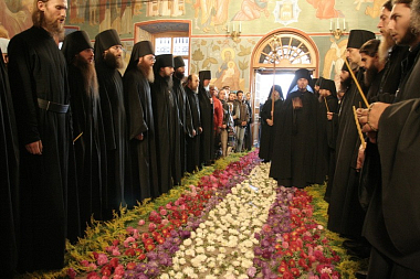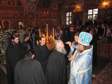 В 1859 г. настоятелем монастыря преп. Моисеем (Путиловым), по случаю окончания стенной росписи и позолоты иконостаса, совершено малое освящение обновленного храма.