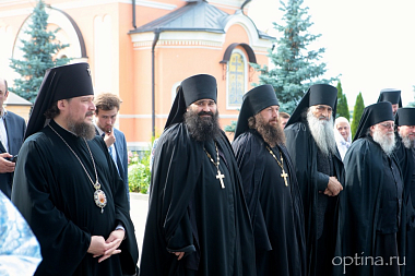В настоящее время в Оптиной пустыни действуют семь храмов. На территории монастыря – Введенский храм, построен в 1750–1771 годах; Владимирский храм, восстановлен на месте полностью разрушенного, освящен в 1998 году; Казанский храм, построен в 1811 году, восстановлен и освящен в 1996 году. В 2005–2007 годах был построен, расписан и освящен храм в честь Преображения Господня. До закрытия обители советской властью храма на этом месте не было. Таким образом, это строительство открыло новую страницу в истории монастыря – от восстановления разрушенного к созиданию нового.