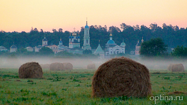 «За несколько верст, подъезжая к обители, уже слышится благоухание; всё становится приветливее, поклоны ниже и участие к человеку больше...» В 1877 году после смерти сына в скиту монастыря жил Ф.М. Достоевский. Некоторые детали в романе «Братья Карамазовы» появились под впечатлением от этой поездки, а Оптинский старец Амвросий (Гренков) послужил прототипом старца Зосимы. Неоднократно посещал монастырь и Л.Н. Толстой, последний раз за несколько дней до своей смерти.