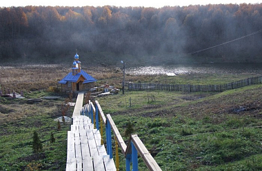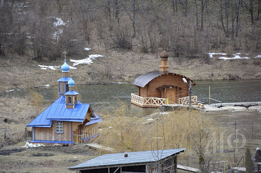 Внизу на источнике поставили изящную купальню в честь Архангела Михаила, в которую погружаются для оздоровления. Вода в купели лечебная, т.к. проходит сквозь пласты голубой глины, to+4C и зимой, и летом.