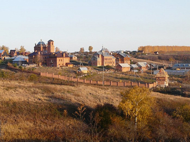 Монастырь расположен на холме и, как полуостров, с трех сторон окружен оврагом, многочисленные источники которого заполняют монастырский пруд. Рядом, в десяти километрах, начинается Татарстан, чуть подальше — Мордовия и Чувашия.