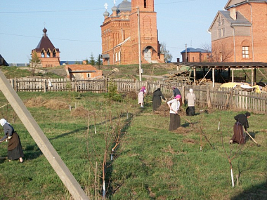 С юго-западной стороны оврага к ручью спускаются монастырские сады и виноградник. Тамже расположен монастырский пчельник павильонного типа.