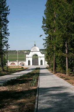 Место расположения обители весьма живописно – лес, холмистые поля, небольшие ручейки, бегущие средь этих полей, озерцо. Монастырь стоит на возвышении в начале большого лесного массива. Обитель находится на месте древней кладбищенской часовни в честь пророка Божия Ильи.