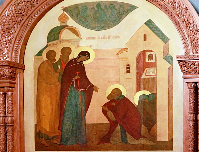 Иго Господне на рамо взем,/ последовал еси Христови со учителем своим преподобным Сергием,/ с нимже и сподобился еси видети Пресвятую Богородицу./ И слышал еси пресладкий глас Ея,/ яко обещася неотступна быти места сего,/ но, о преподобне Михее,/ молися о чтущих святую память твою.