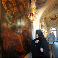 Пресвятая Госпоже, Владычице Богородице, упование всех уповающих на Тя, Заступнице печальных, прибежище отчаянных, вдов и сирот Питательнице! Услыши и помилуй ны, грешныя и недостойныя рабы Своя, со умилением ко пречистому Твоему образу припадающия: умоли, Милосердая Владычице, Сына Твоего и Господа нашего Иисуса Христа, да отвратит от нас праведный гнев Свой, да простит грехи и беззакония наша, яко да сподобимся благостию Его скончати житие наше в покаянии и получити милость Его со всеми избранными Его, яко благословена и препрославлена еси во веки веков. Аминь.