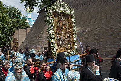 4 октября 1992 г., в день памяти святителя Димитрия Ростовского, Святогорскую икону Божией Матери торжественно крестным ходом перенесли в Святогорский монастырь и поставили в Успенском соборе. Последний отрезок пути (Славянск — Святые Горы), расстоянием около 32 км, более девяти часов крестный ход шел пешком, а икону несли священнослужители на руках.