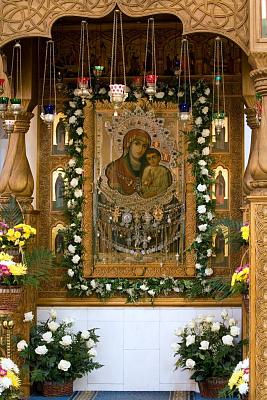 В воскресные дни (если не случается Всенощное бдение) после окончания вечернего богослужения перед чудотворной иконой служится молебен с акафистом Божией Матери «Радуйся, Невесто Неневестная!»