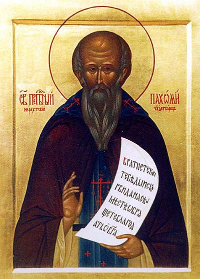 Пре­по­доб­ный Па­хо­мий Нерехт­ский, в ми­ру Яков, ро­дил­ся в се­мье свя­щен­ни­ка во Вла­ди­ми­ре на Клязь­ме. Се­ми лет он был от­дан в уче­ние, по­это­му с дет­ства хо­ро­шо знал Бо­же­ствен­ное Пи­са­ние. Тя­го­тясь су­ет­но­стью тлен­но­го ми­ра, он при­нял по­стриг в Рож­де­ствен­ском Вла­ди­мир­ском мо­на­сты­ре и без­ро­пот­но про­хо­дил в оби­те­ли раз­ные по­слу­ша­ния. Стре­мясь к без­молв­но­му пу­стын­но­му жи­тию, по­движ­ник тай­но оста­вил оби­тель и уда­лил­ся в пре­де­лы Нерехты. Здесь, на реч­ке Гри­ден­ке, на­шел он удоб­ное ме­сто для ино­че­ской жиз­ни – воз­вы­шен­ный по­лу­ост­ров в глу­хом ле­су. Пре­по­доб­ный об­ра­тил­ся к жи­те­лям по­са­да Нерехты с прось­бой по­се­лить­ся и устро­ить оби­тель в ме­стеч­ке Сы­па­но­во Ко­стром­ско­го края. Нерехт­цы с ра­до­стью со­гла­си­лись и при­ня­ли по­силь­ное уча­стие в устрой­стве оби­те­ли. Пре­по­доб­ный Па­хо­мий на­пи­сал об­раз Свя­той Тро­и­цы и с мо­леб­ным пе­ни­ем при­нес его на то ме­сто, где по­ло­жил воз­двиг­нуть храм во имя Свя­той Тро­и­цы. Окон­чив по­стро­е­ние хра­ма, свя­той Па­хо­мий за­нял­ся устро­е­ни­ем по­ряд­ка в но­вой оби­те­ли, ко­то­рая по­сте­пен­но на­се­ля­лась ино­ка­ми. В но­во­устро­ен­ной оби­те­ли ино­ки долж­ны бы­ли са­ми об­ра­ба­ты­вать зем­лю и пи­тать­ся тру­да­ми рук сво­их, в чем свя­той пер­вый по­да­вал при­мер бра­тии. Пре­по­доб­ный скон­чал­ся в 1384 го­ду в глу­бо­кой ста­ро­сти и был по­гре­бен в ос­но­ван­ном им Тро­иц­ком хра­ме. Од­ним из его уче­ни­ков, Ири­нар­хом, бы­ла на­пи­са­на ико­на свя­то­го, поз­же бы­ла устро­е­на гроб­ни­ца для свя­тых мо­щей.