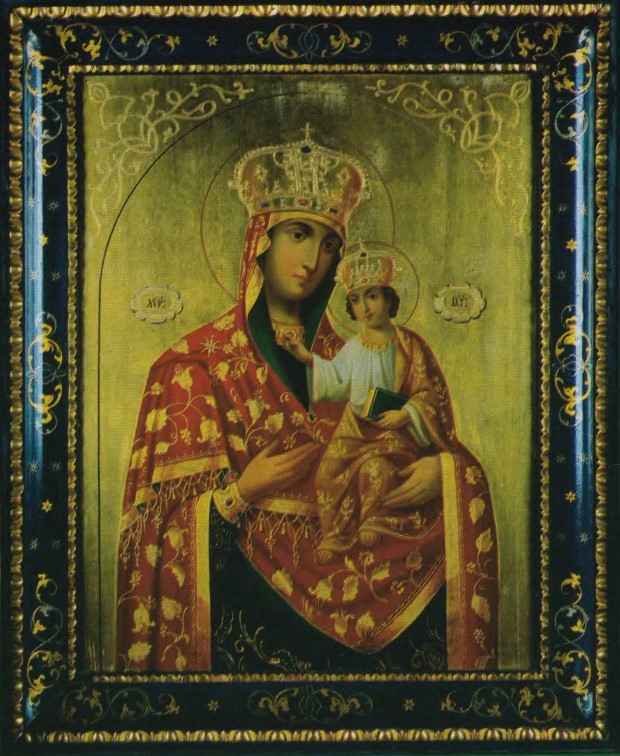Икона Господа Вседержителя и икона Черниговская (Гефсиманская) Божией Матери принадлежали священномученику Владимиру, митрополиту Киевскому и Галицкому 1918 г.). Они были написаны по заказу святителя в иконописной мастерской Киево-Печерской Лавры в конце XIX – начале XX в. После убийства митрополита Владимира насельники Лавры вынесли иконы из митрополичьих покоев и хранили их как священные реликвии. В 1930 г., когда Лавру закрыли, монахи забрали эти иконы с собой.