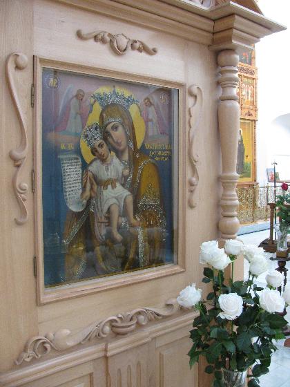 Божественную Твою икону сию со всяким благоговением держаще отцы вси, плещуще, с песньми и пеньми внесоша в Божественный храм Твой, Пречистая.