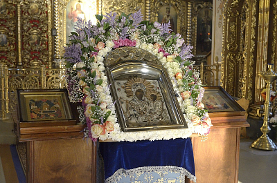 Сила Вышняго осеняет выну с верою притекающих к державному покрову Твоему, Владычице, и благоговейно чтущих чудотворную икону Твою, Богомати, той бо дадеся благодать от Бога всяк недуг и язю в людех врачевати, темже благодарственно вопием Богу: Аллилуиа.