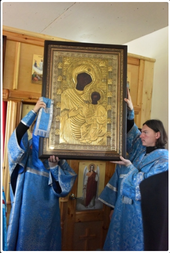 Радуйся, святую икону дати нам изволившая; радуйся, покров ю быти нам обещавшая.