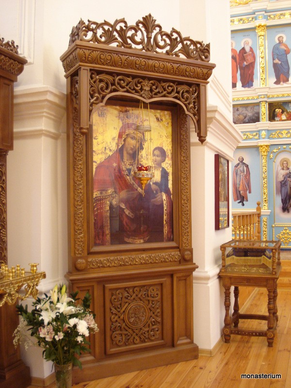 Аще и в море ввержена бысть святая икона Твоя, Богородице,/ от вдовицы, не могущия спасти сию от врагов,/ но явилася есть хранительница Афона/ и вратарница обители Иверския, враги устрашающая/ и в православней Российстей стране// чтущия Тя от всех бед и напастей избавляющая.