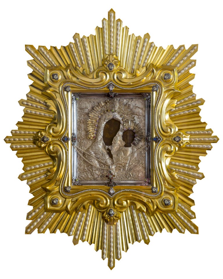 Бла­го­дат­ным осе­не­ни­ем рас­по­ло­жи­лись ико­ны Пре­чи­стой Бо­го­ро­ди­цы по ли­цу на­шей От­чиз­ны, во­ис­ти­ну об­ра­зуя Небес­ный по­кров. Ее неустан­ным хо­да­тай­ством нис­по­слан­ный Бо­же­ствен­ным Сы­ном, при­нес­шим Се­бя в жерт­ву для спа­се­ния че­ло­ве­че­ства. Древ­ний Вла­ди­мир­ский свя­той об­раз Бо­го­ро­ди­цы хра­нит и бла­го­слов­ля­ет на­ши се­вер­ные пре­де­лы, Смо­лен­ская и По­ча­ев­ская ико­ны ограж­да­ют за­пад, а на во­сток, до края зем­ли си­я­ет лу­ча­ми неиз­быв­ной бла­го­да­ти чу­до­твор­ный Ка­зан­ский об­раз Пре­чи­стой на­шей Ма­те­ри.