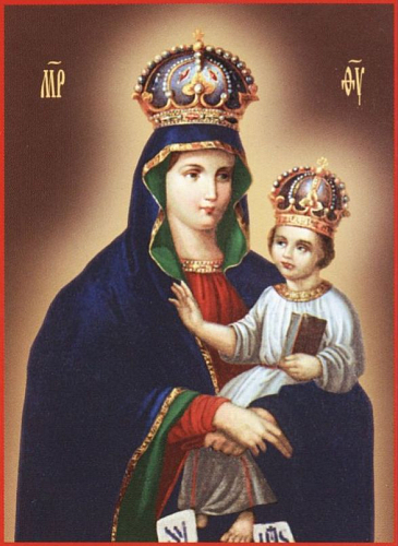 Пресвятая Богородице Дево Владычице, высшая Ангел и Архангел и всея твари Честнейшая! Услыши нас, молящихся Тебе, и яви милость Твою на людех Твоих. Помяни, Всемилостивая Госпоже, предстоящия люди и ради благословных вин оставльшихся помилуй их и нас по множеству милости Твоея: сокровища их исполни всякого блага, супружества их в мире и единомыслии соблюди, младенцы воспитай, юность настави, старость поддержи, малодушныя утеши, расточенныя собери, прельщенныя вразуми, стуждаемыя от духов нечистых свободи, плавающим сплавай и путешествующим спутешествуй, вдовицам предстани, сирых защити, плененныя избави, недугующия исцели, на судищи и в рудах, и в заточениих и в горьких работах, и во всякой скорби и нужде, и в обстоянии сущих облегчи, восстави и помилуй. Изряднее же Церковь Сына Твоего соблюди и сохрани в долготу дний. Ты бо еси, Госпоже, Надеждо наша и Заступнице всех притекающих к Тебе и Твоея святыя помощи просящих. Тем же Всечестный образ Твой и рукою Твоею Держимаго Вседержителя видяще на иконе радуемся грешнии с умилением припадающе и любовию сей целуем, чающе, Госпоже, Твоими святыми Богоприятными молитвами сподобитися и небесныя бесконечныя жизни, и непостыдно стати в день судный одесную Сына Твоего и Бога нашего, славяще Его купно со Безначальным Отцем и Пресвятым, и Благим, и Животворящим Духом во веки веков. Аминь.