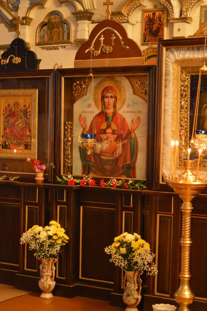 Широкий путь жития зле возлюбихом, Богородице, к погибели сыны своя влекущий и веру их сокрушающий; но пред святою Твоею иконою предстояще, покаяние о сем приносим и помощи Твоея смиренно просим, во еже на путь спасения обратитися.