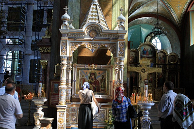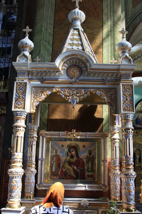 20 марта следующего года над Ее образом закрепили фарфоровую сень, выполненную в одном стиле с центральным иконостасом, изготовленную в мастерской В. Н. Шишкина.