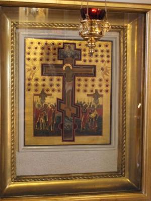 В Покровском приделе Свято-Троицкого собора Александро-Невской Лавры находится икона-мощевик со вставленным в нее восьмиконечным крестом. История этой старинной иконы неизвестна. Верхнюю ее часть занимают мощи семидесяти избранных святых угодников, многие из которых принадлежат Киевопечерским преподобным. На нижней части иконы по обеим сторонам креста изображена сцена распятия.