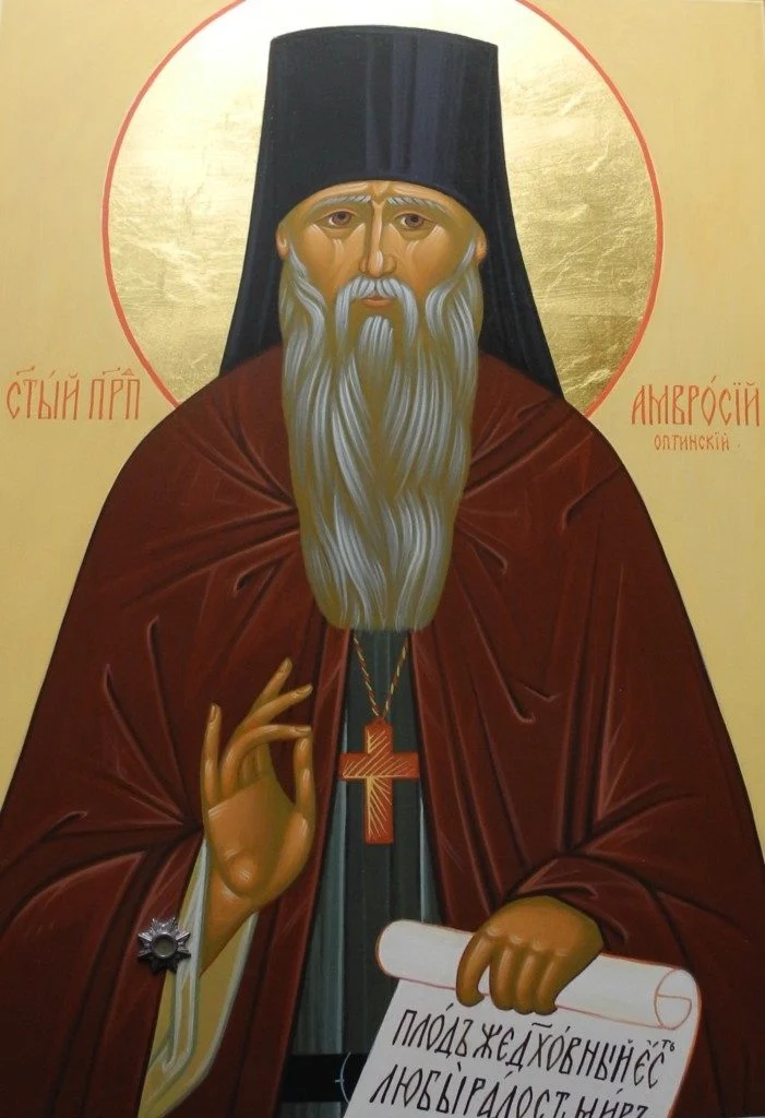 Икона преподобного Амвросия Оптинского с частицей мощей