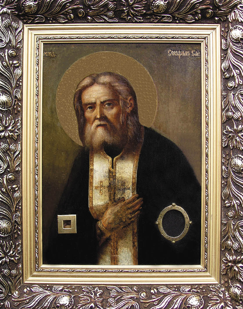 Икона преподобного Серафима Саровского с частицей мощей.
