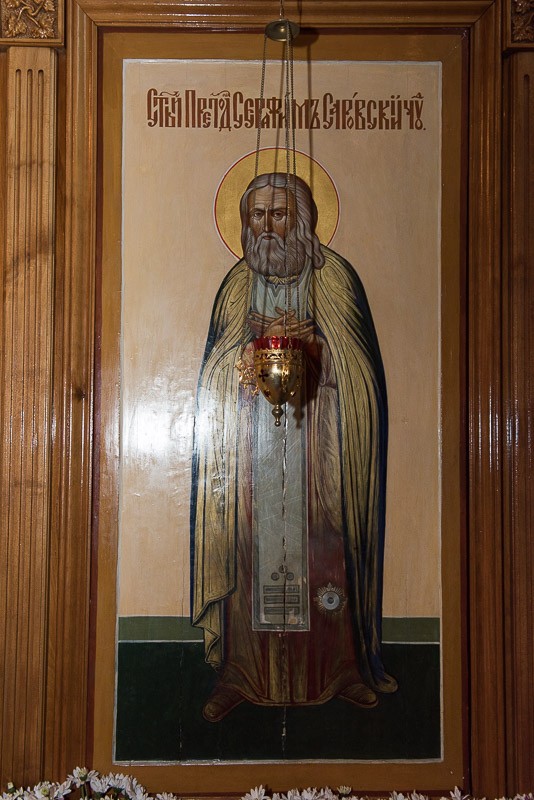 Икона преподобного Серафима Саровского с частицей мощей в иконостасе