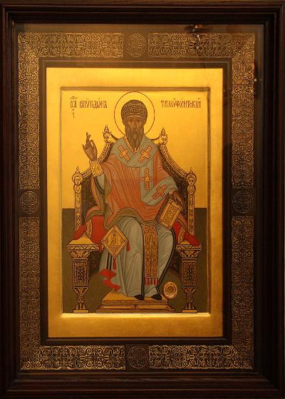 Икона святителя Спиридона Тримифунтского с частицей мощей.