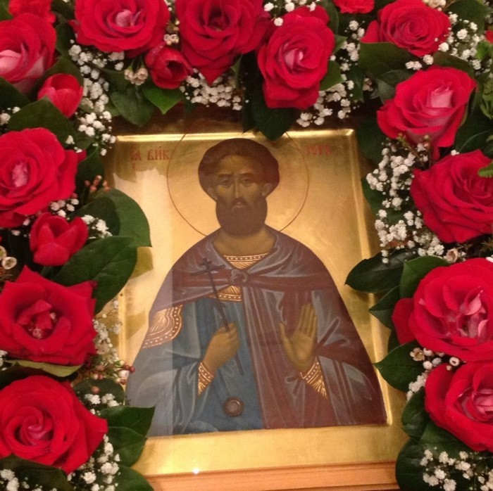 Икона святого мученика Виктора с частицей мощей.