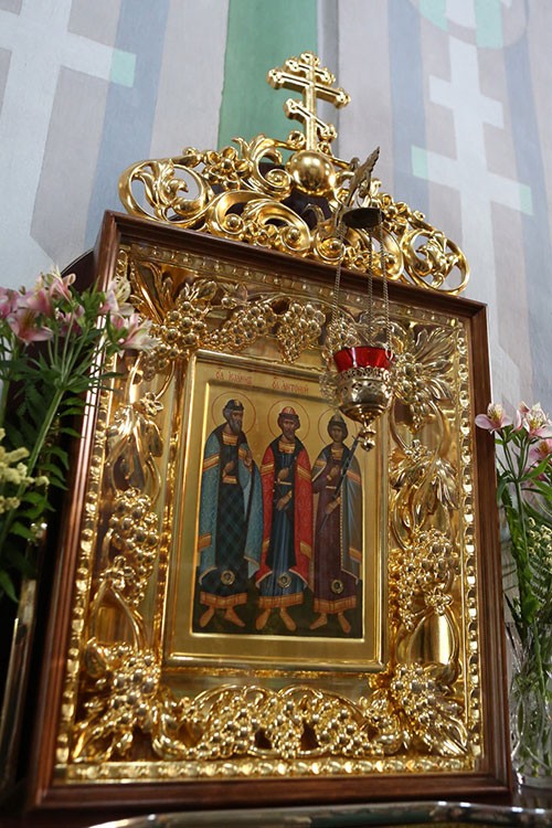 Икона Виленских мучеников Антония, Иоанна и Евстафия с частицами мощей