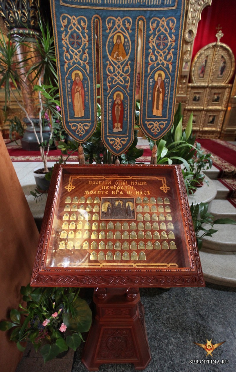 Справа от амвона, в южном приделе храма, освященном в честь Собора всех преподобных отцов Киево-Печерских, расположен мощевик преподобных старцев Печерских.