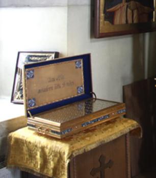 В монастыре были собраны 90 частиц мощей святых и других святынь и помещены в мощевики для поклонения верующим. В настоящий момент в монастыре имеются частицы мощей ап. и еванг. Матфея, ап. Андрея Первозванного, первомученика архидиакона Стефана, сщмч. Игнатия Богоносца, свт. Николая Мирликийского, свт. Василия Великого, свт. Петра митр. Московского, свт. Саввы Сербского, прп. Антония Великого, прп. Сергия Радонежского, вмч. Пантелеимона Целителя, вмч. Георгия Победоносца, вмч. Димитрия Солунского, вмч. Феодора Стратилата, вмч. Варвары, мчч. и бесср. Космы и Дамиана, Кира и Иоанна, мц. Татианы, Киево-Печерских свв., Оптинских свв., Глинских свв, .Владимирский свв., Рязанских свв. и др. святых.