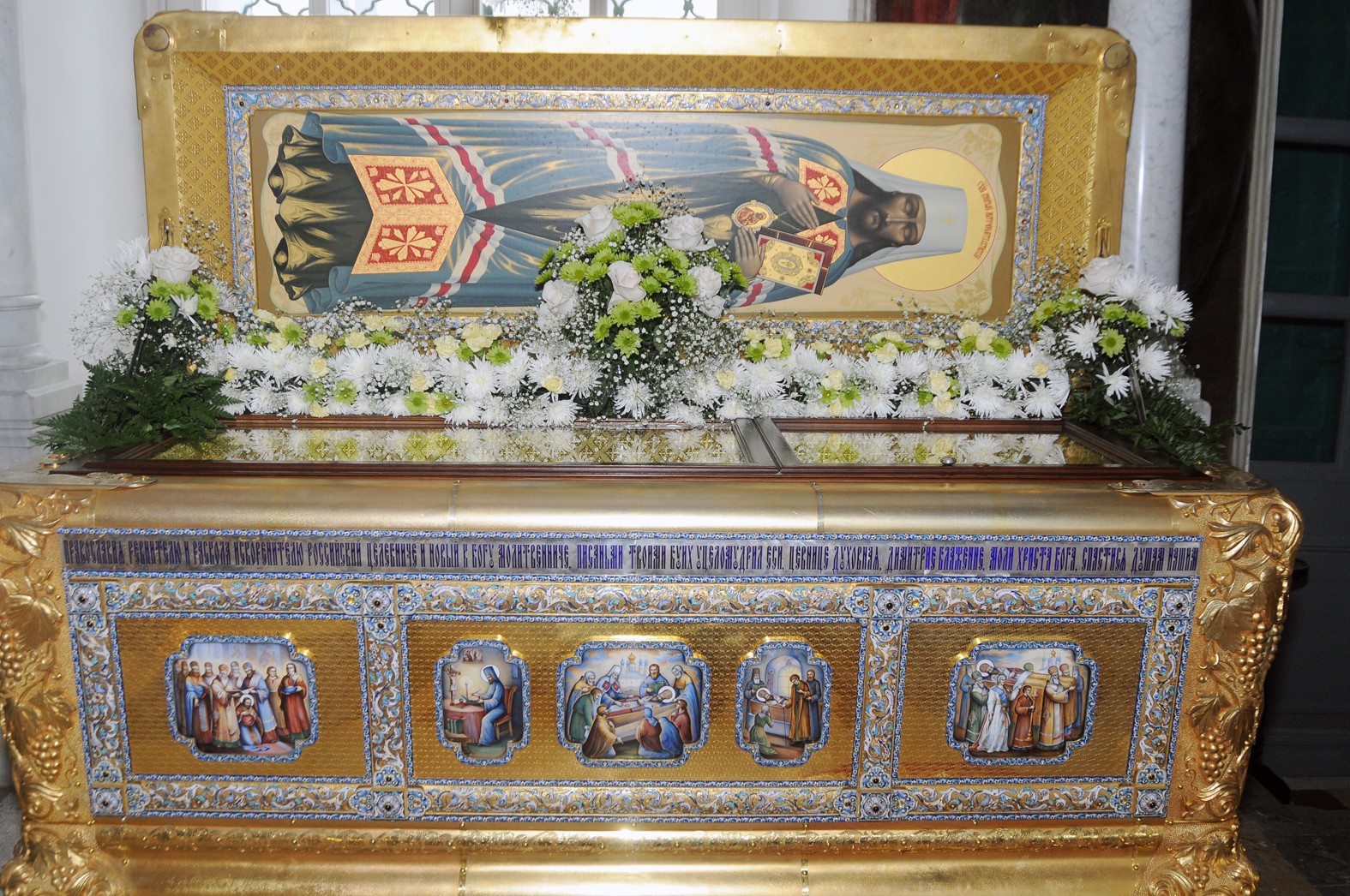Позолоченная серебряная рака, украшенная финифтевыми плашками с сюжетами жития и обретения мощей святителя пребывает в Димитриевском соборе Спасо-Яковлевского Димитриева монастыря. Митрополит Димитрий (1651–1709 гг.) являлся одним из выдающихся деятелей Русской Православной Церкви последней четверти XVII – начала XVIII вв., он прославил свое имя как архиерей-подвижник, пастырь и проповедник, агиограф, летописец и публицист. Ростовская кафедра стала последним местом его служения, святитель возглавил ее в 1702 г. и в первый же год своего управления открыл школу — первую в России, на сцене которой силами преподавателей и учеников было поставлено одно из самых известных его драматических произведений «Комедия на Рождество Христово», в современных постановках известная как «Ростовское действо». В ночь на 28 октября/10 ноября 1709 г. во время молитвы перед келейными иконами митрополит Димитрий скончался. Согласно оставленному им завещанию его тело было предано земле в юго-западном углу храма Зачатия Пресвятой Богородицы Яковлевского монастыря. 21 сентября/ 4 октября 1752 г. были обретены мощи святителя. 1 апреля 1757 г., в первый день Пасхи, святитель был причислен к лику святых. За пять лет, пока в Святейшем Синоде шло дело о канонизации свт. Димитрия, в Яковлевском монастыре у его мощей было записано под присягой 288 случаев чудесной помощи и исцелений по молитвам к святителю. Ростовский митрополит Димитрий явился первым святым, канонизированным к общерусскому почитанию в синодальный период и оставался единственным до конца XIX ст. Почитание святителя было необычайно широко. У его мощей побывали императрица Екатерина II, император Александр I, императрица Мария Федоровна, супруга Павла I; Александр II, Николай II с детьми, другие представители царствующего дома, в том числе великий князь Сергей Александрович с супругой великой княгиней Елизаветой Федоровной, некоторые из них неоднократно. Также у святых мощей свт. Димитрия молились такие известные подвижники, как свт. Филарет, митрополит Московский; Всероссийский батюшка отец Иоанн Кронштадтский; свт. Тихон, патриарх Московский.