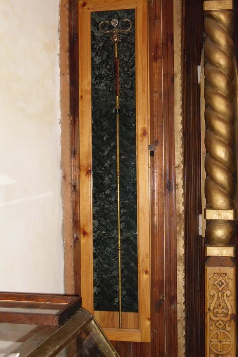 Слева от ниши хранится настоятельский жезл архимандрита Матфея (Сунцова), основателя и строителя монастыря с 1866 года по 1895 год.