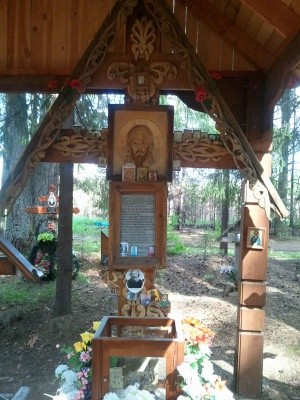 Через время отец Симеон уходит жить на другой берег реки Нейвы в глухом лесу на горе. Выкопал пещерку, а к реке устроил спуск более ста ступеней, по которым носил воду. Был в то время у него послушник Алексей из местных, соработник в физических трудах и соучастник в молитвах. Но Господь в молодых годах призвал его и он умер. Отец Симеон жил, молился и трудился как преподобный Серафим. На горе рядом с кельей, сохранилась, по сей день Голгофа и Крест, который отец Симеон соорудил сам. Сейчас этот Крест находится в Преображенской церкви в этом же селе. Пещерка была небольшой, в ней был узкий проход, всегда горела неугасимая лампада перед образом св. пророка Илии. Этого святого батюшка особо почитал. В неспокойные года лихолетья и богоборчества отец Симеон много молился, многие страждущие и ищущие спасения приходили к нему за советом. Многих он утешал, наставлял на путь веры и благочестия. Иным давал совет, как поступать в житейских делам и этим прозревал будущее. Богоборческая власть не прошла стороной отца Симеона и живущих в Сербишино. В 1935 году монастырь был закрыт, а отец Симеон и его матушка Валерия были направлены в дом старчества. Когда отца Симеона отпустили, то он жил у себя на горе в избушке. Жилось тяжело, но батюшка не унывал, больше молился и своей молитвой укреплял многих.