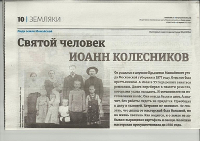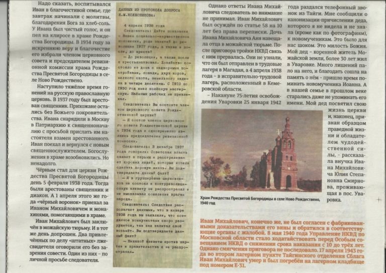 * Иван Михайлович был прихожанином храма Рождества Пресвятой Богородицы не в с. Поречье, а в с. Ново Рожествено (недалеко от д. Суконники). Ныне храм не существует. (Сайт Успенского Колоцкого женского монастыря)
