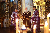 Торжествует Церковь первородных, / и свеселится приемля матерь о чадех веселящуюся, / яже яко мудрости тезоименитая / тройственным богословским добродетелем равночисленныя породи. / Тыя с мудрыми девами зрит уневестившияся Жениху Богу Слову, / с нею и мы духовне в памяти их свеселимся, глаголюще: / Троицы поборницы, / Веро, Любве и Надеждо, / в вере, любви и надежде утверждайте нас.