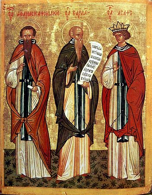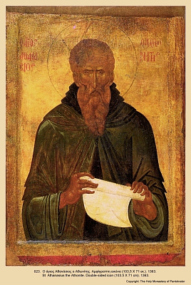 Еже во плоти житию твоему/ удивишася ангельстии чини:/ како с телом к невидимым сплетением изшел еси, приснославне,/ и уязвил еси демонские полки./ Отонудуже, Афанасие,/ Христос тебе воздаде богатыми дарованьми,/ сего ради, отче, моли/ спастися душам нашим.