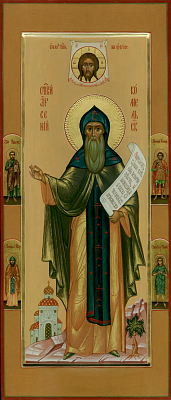 Ра́дуйся, житія́ и́ноческаго му́дрый устрои́телю; ра́дуйся, смире́нія, цѣлому́дрія и нестяжа́тельности ре́вностный насади́телю.