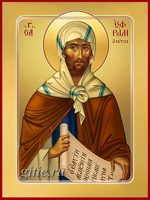 Слез твоих теченьми пустыни безплодное возделал еси, / и иже из глубины воздыханьми во сто трудов уплодоносил еси, / и был еси светильник вселенней, / сияя чудесы, Ефреме, отче наш, / моли Христа Бога спастися душам нашим.